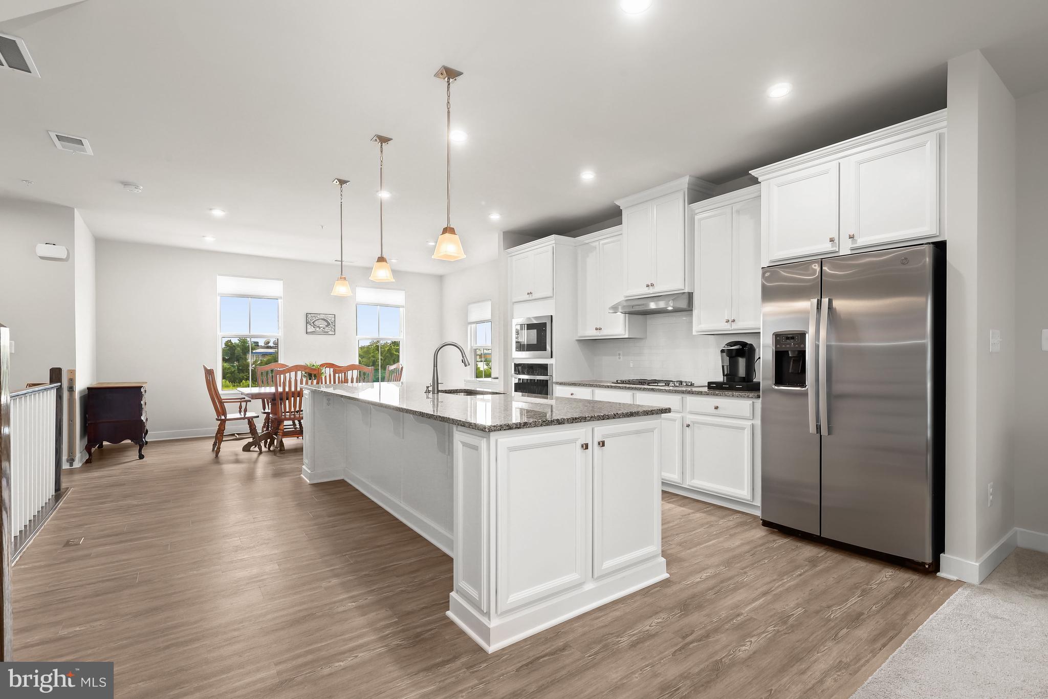 Beautiful end unit townhome condominium in Laurel's desired Paddock Pointe community. This Hayes model includes upgraded hardwood flooring on the stairs, LED lighting, internet wiring, and sky lanai fireplace and features an exceptional open floor plan that includes living and dining areas and a gourmet kitchen. Prepare your favorite meals in the gourmet kitchen that highlights an oversized island with a prep sink and breakfast bar, granite countertops, and stainless appliances, and opens to a sun filled dining room. The living room has sliding door access to the sky lanai showcasing a gas fireplace in a modern stacked stone surround, providing additional living space. Ascend the staircase to the primary bedroom suite that has a large walk-in closet and en suite bath with a glass enclosed shower with seating and dual shower heads, and 2 vanities with a make up center. Two sizable bedrooms, a hall bath, and the laundry room complete this level. Enjoy living within close proximity to walking trails, the Maryland Jockey Club, Laurel Park and the MARC train station for easy commuter access.
