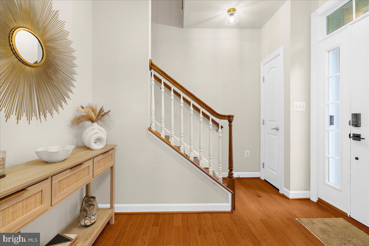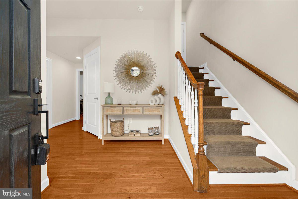 Beautifully maintained and move-in ready 3BR/3.5BA Townhome, with a detached garage, located in the quiet neighborhood of Maple Lawn. Make your way past the beautifully maintained common grounds to the front door of your new home. This home is filled with natural light, hardwood floors, custom moldings, and a soft color palette. Step into the ground floor featuring a home office behind french doors, a large family room with a wet bar and built-in shelving, storage, and a full bath. Take the steps leading to the main floor living space featuring a formal living and dining rooms, a half bath, and an open concept kitchen, family room, and breakfast room. The kitchen is glamorous, featuring plenty of cabinets finished with crown moldings, beautiful granite countertops with a complementing tiled backsplash, stainless steel appliances including an electric cooktop and a microwave wall oven combination, and pendant lights over the spacious island with a double sink, and a raised breakfast bar. On the second floor are two sizable secondary bedrooms, a full bath, and a grand primary suite. The primary features a tray ceiling, two large walk-in closets, and a private ensuite boasting a double sink vanity, a walk-in shower with a bench, and a deep soaking tub. From the main floor, step outside to gain access to the detached garage. This home is ideal for any new homeowner and is located in close proximity to shopping, restaurants, and commuter routes.